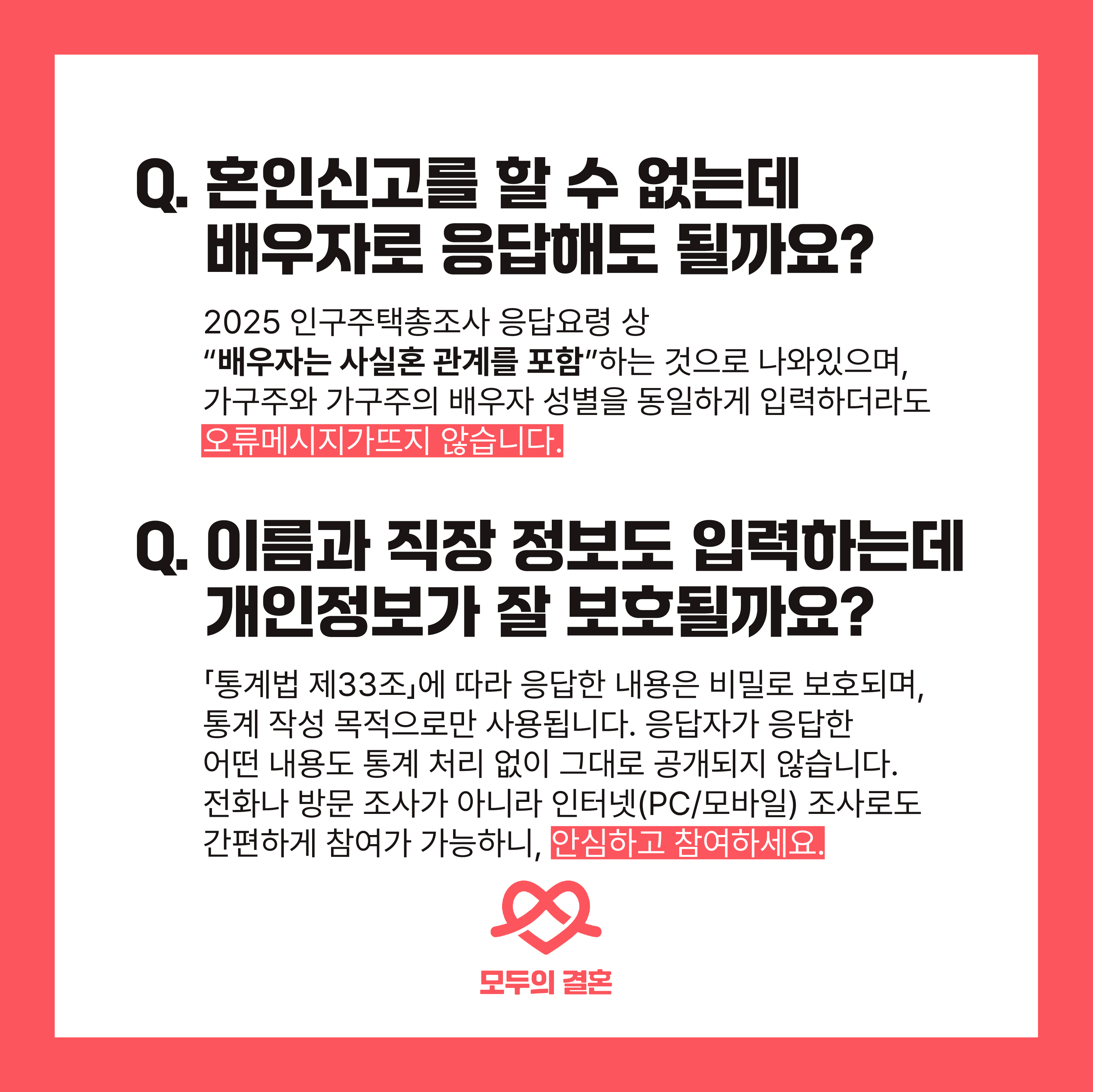 2025 μΈκ΅¬μ£Όνμ΄μ‘°μ¬(25.10.22-11.18)μμλ πμ±λ³μ΄ κ°μλ κ°κ΅¬μ£Όμμ κ΄κ³λ₯Ό λ°°μ°μ λλ λΉνΌλκ±°(ν¨κ» μ¬λ μ°μΈ λ±)λ‘ μλ΅ν μ μμ΅λλ€. κ΅κ° μ μ±